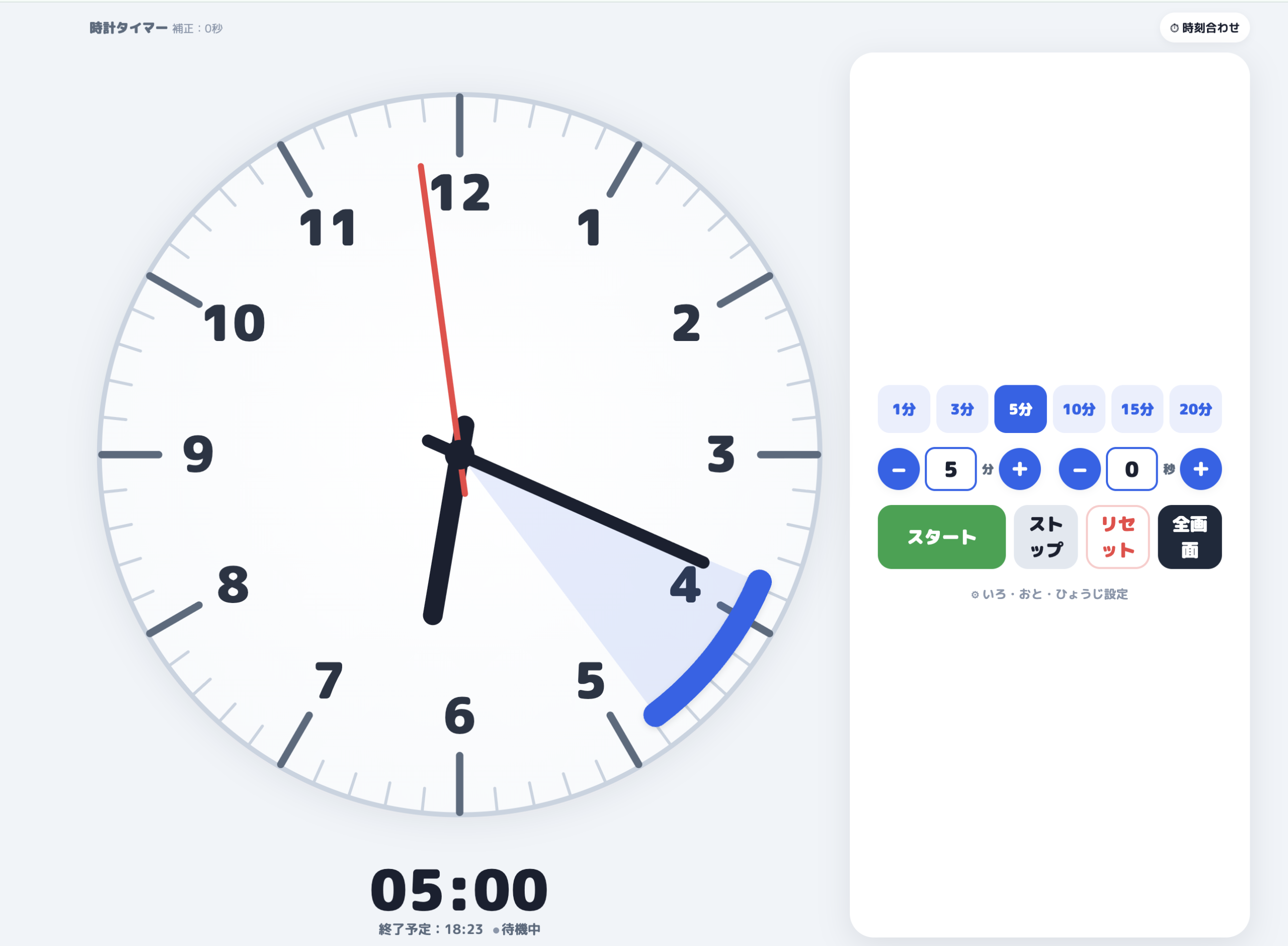 針の動きとともに残り時間がわかるので、時間の見通しをもつ練習や、時計の読み方学習に活用できます。