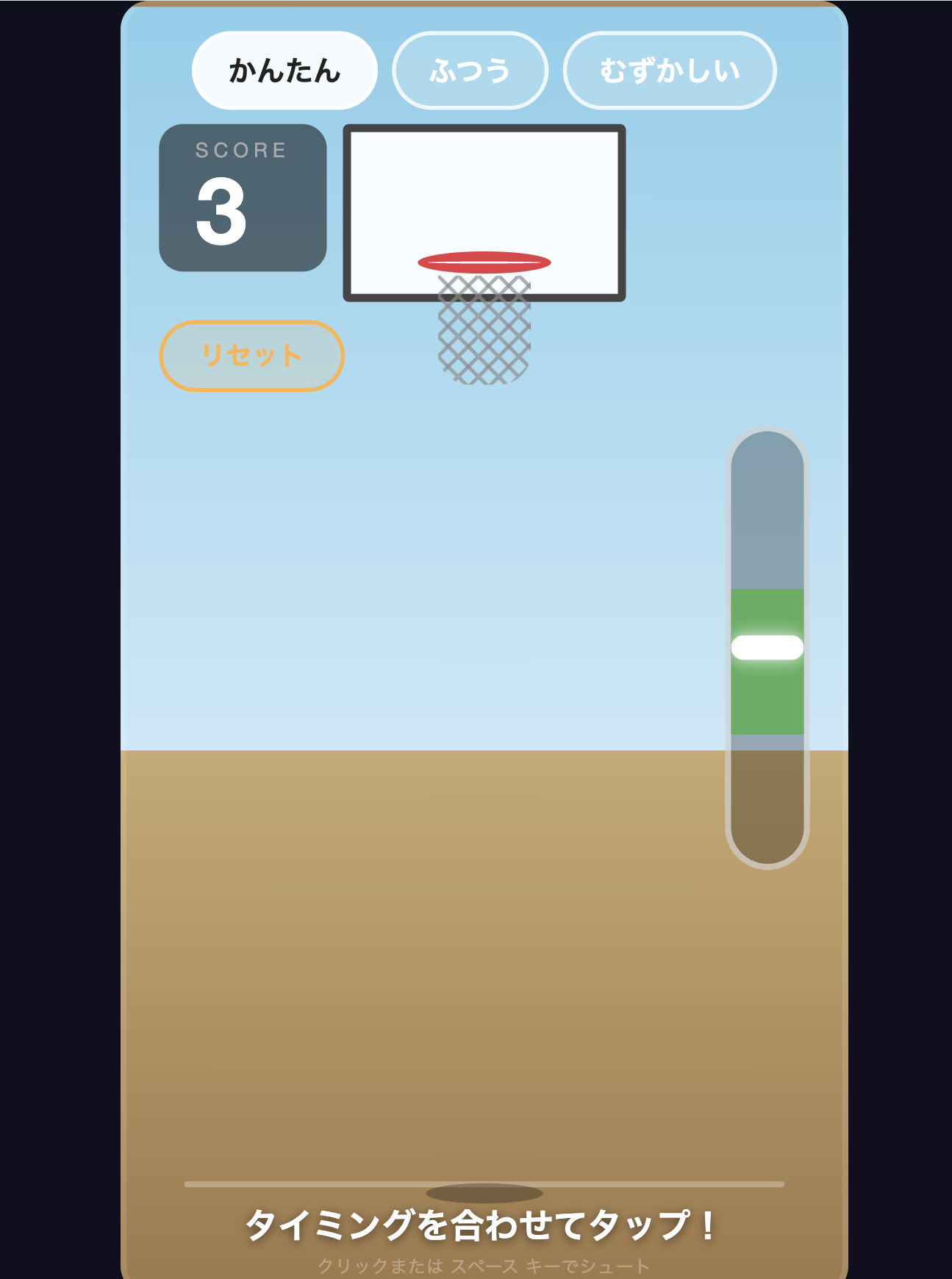 バスケットボールが大好きな子のために作ったタイミングゲームです。