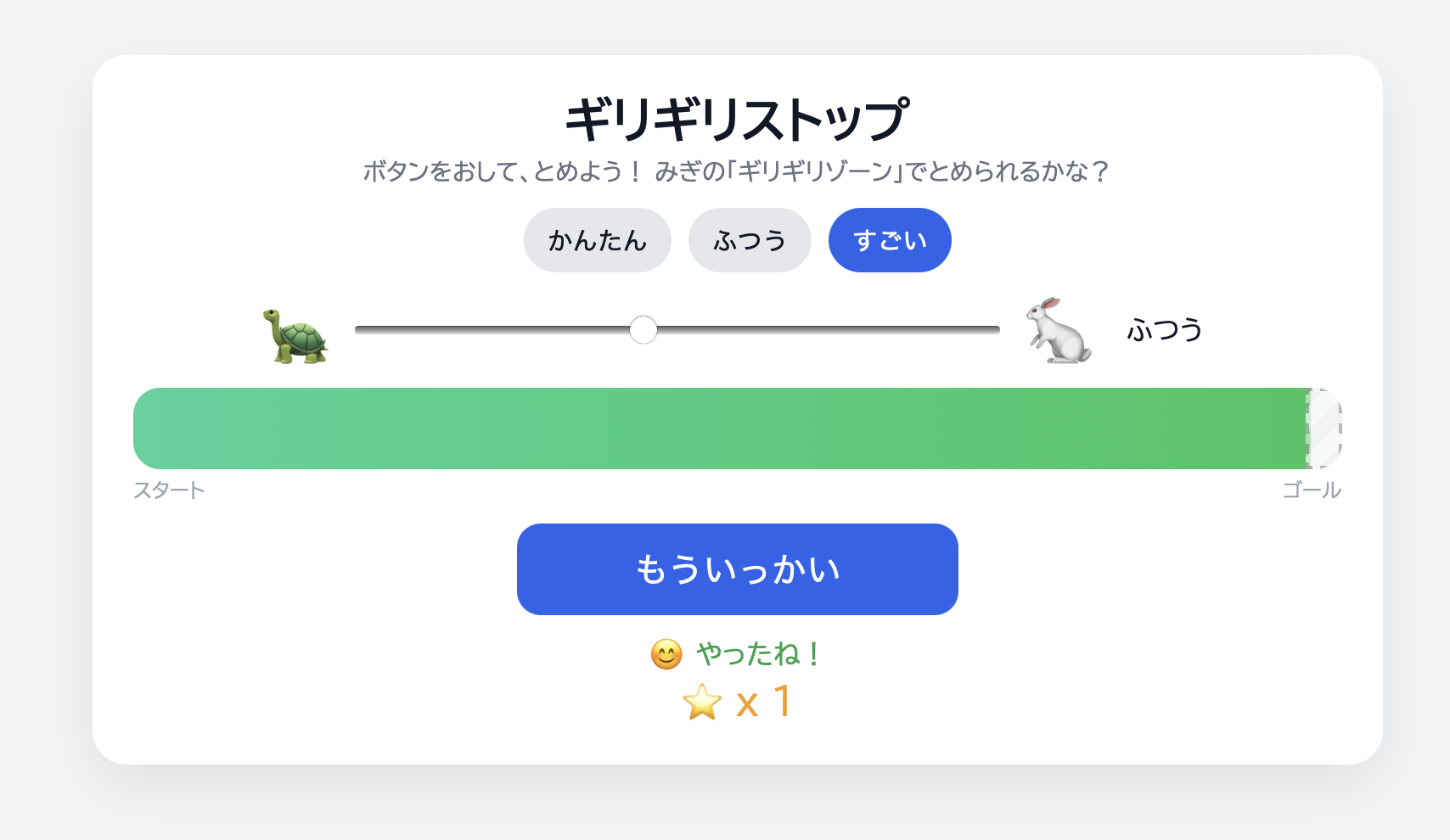 【知育教材】ギリギリストップゲーム ビジョントレーニング 2025.10.23 使ってみる👉ギリギリストップゲーム 子どものアイディアから作ったゲームです。ギリギリのところで止めるだけのシンプルゲーム。意外とハマります。 使ってみる👉ギリギリストップゲーム
