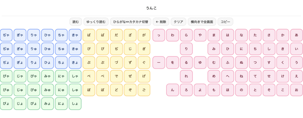子どもたちが、ボタンを押すと音声が出るおもちゃで、「う◯こ」と音を出して笑いながらひらがなを覚えていた様子をみて作りました。