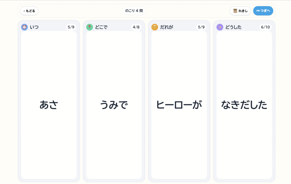 使ってみる👉いつ・どこで・だれが・どうした ゲーム