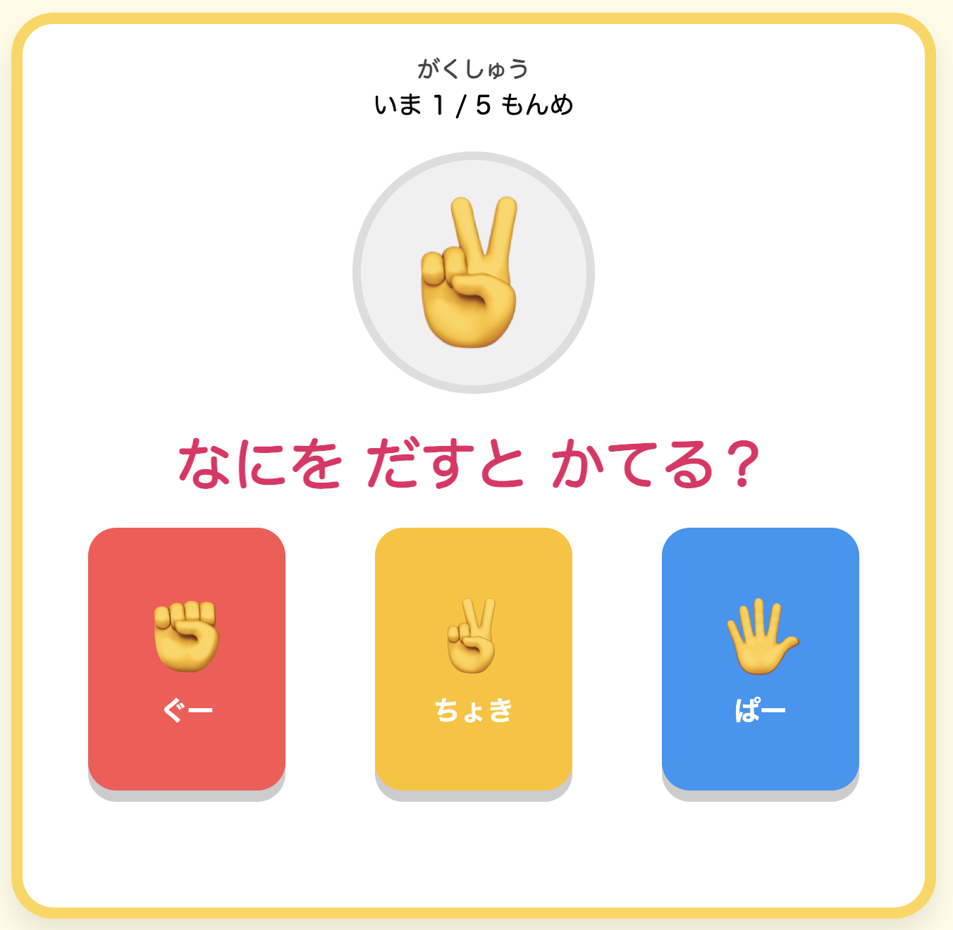 相手の手を見て、「勝つ手」を選ぶ練習ができます。