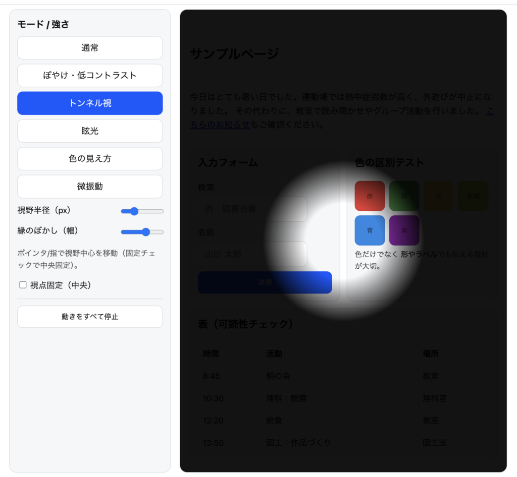 見え方体験シュミレーターは、視覚の見え方の違いを簡単に疑似体験できるWebアプリです。