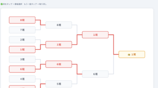先生の道具 トーナメント表メーカー 名前を入力してボタンを押すだけでトーナメント表が完成。勝者をタップすると赤い線が伸びます。5人など端数にも対応。印刷もできる無料Webアプリです。 2026.04.15 先生の道具開発教材