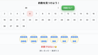 算数 【算数】公約数を見つけよう! 使ってみる👉公約数を見つけよう!公約数を見つけるアプリを作りました。本来は自分で公約数を探せることが理想ですが、約数が分からずに授業を拒否したり、自己肯定感が下がってしまうことがあります。このアプリは、公約数の意味が分かるようになるまでの「... 2025.09.23 算数開発教材